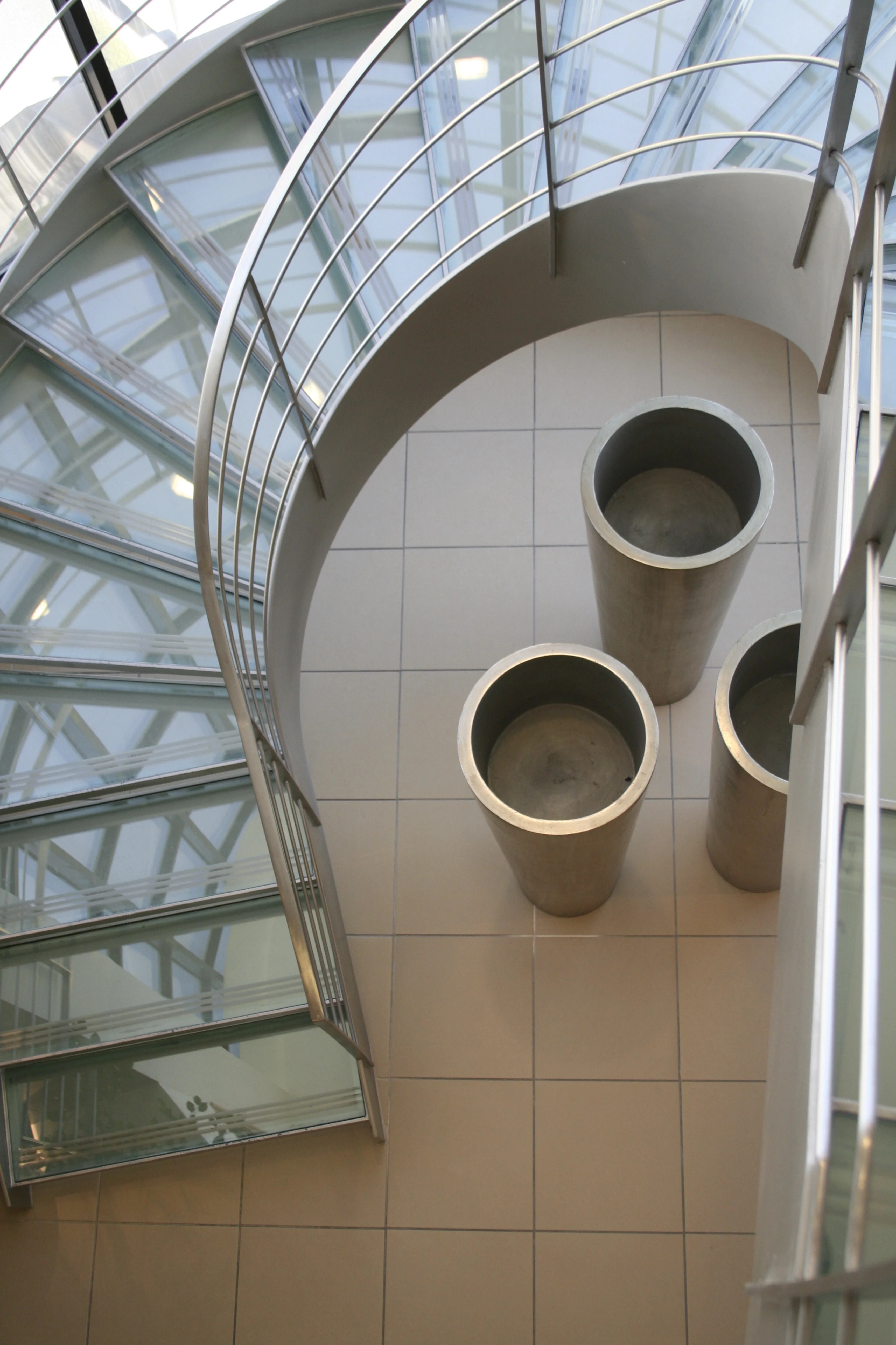 The main feature and focal point of the Reception area is the circular stainless steel & glazed glass stairs, connecting the private floor with the employee’s floor. The goal was to create a functional, elegant and transparent office space that is aesthetically pleasing. This was achieved by using interior glass partitions to provide natural light for the interior core of each floor, the use of warm veneer Beech wood for floor covering integrated with grey porcelain tiles. Maple veneer wall paneling & doors accented by contemporary furniture and rich colored kilim rugs.
